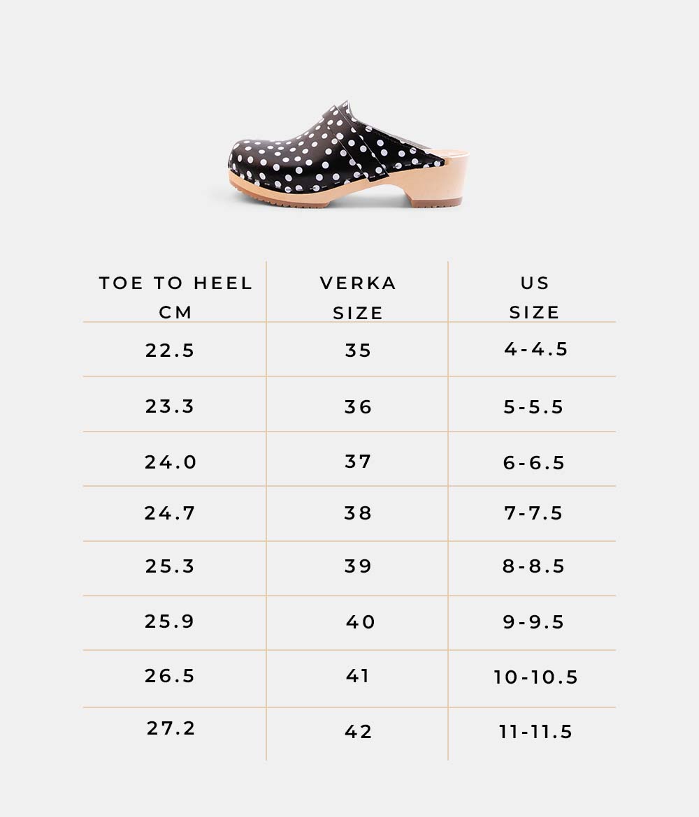 Looking for your VERKA size? Please measure your feet and compare the longest measurement to our style-specific size guide below.