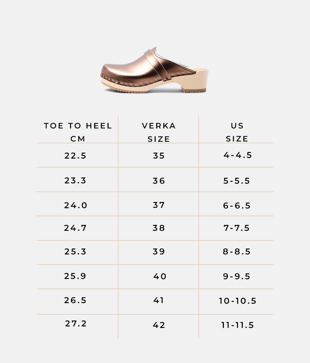 Looking for your VERKA size? Please measure your feet and compare the longest measurement to our style-specific size guide below.