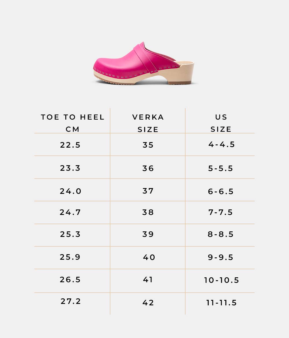 Looking for your VERKA size? Please measure your feet and compare the longest measurement to our style-specific size guide below.