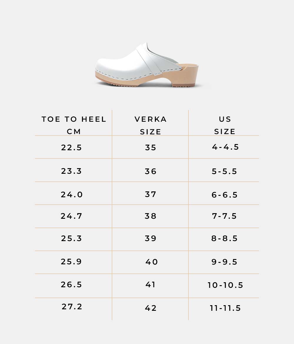 Looking for your VERKA size? Please measure your feet and compare the longest measurement to our style-specific size guide below.