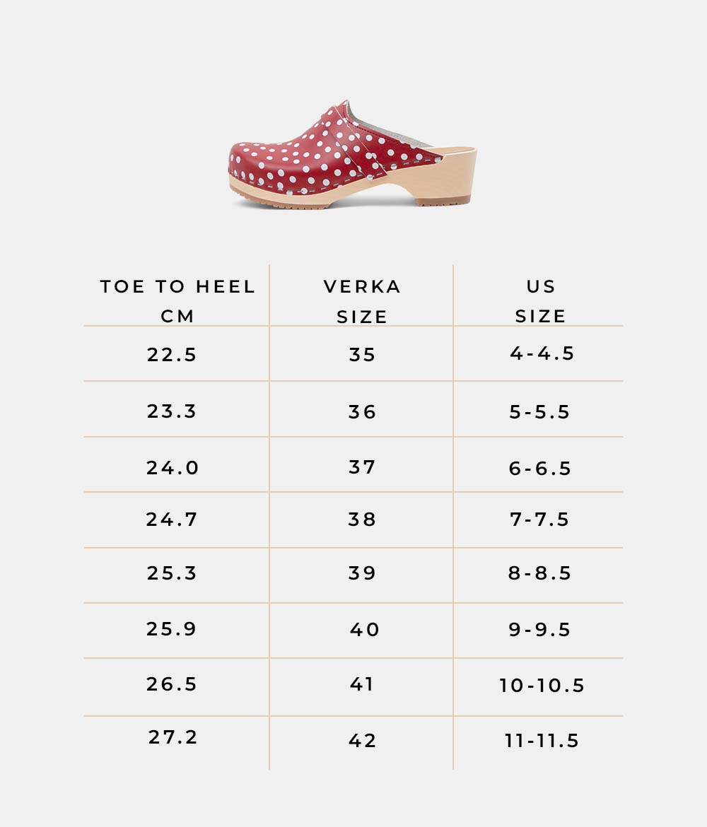 Looking for your VERKA size? Please measure your feet and compare the longest measurement to our style-specific size guide below.