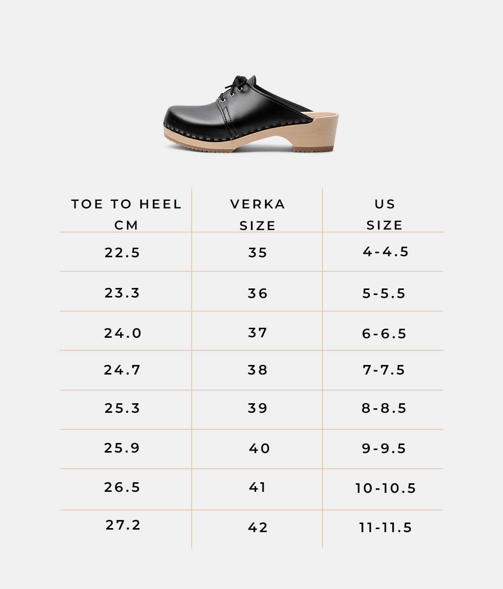 Looking for your VERKA size? Please measure your feet and compare the longest measurement to our style-specific size guide below.