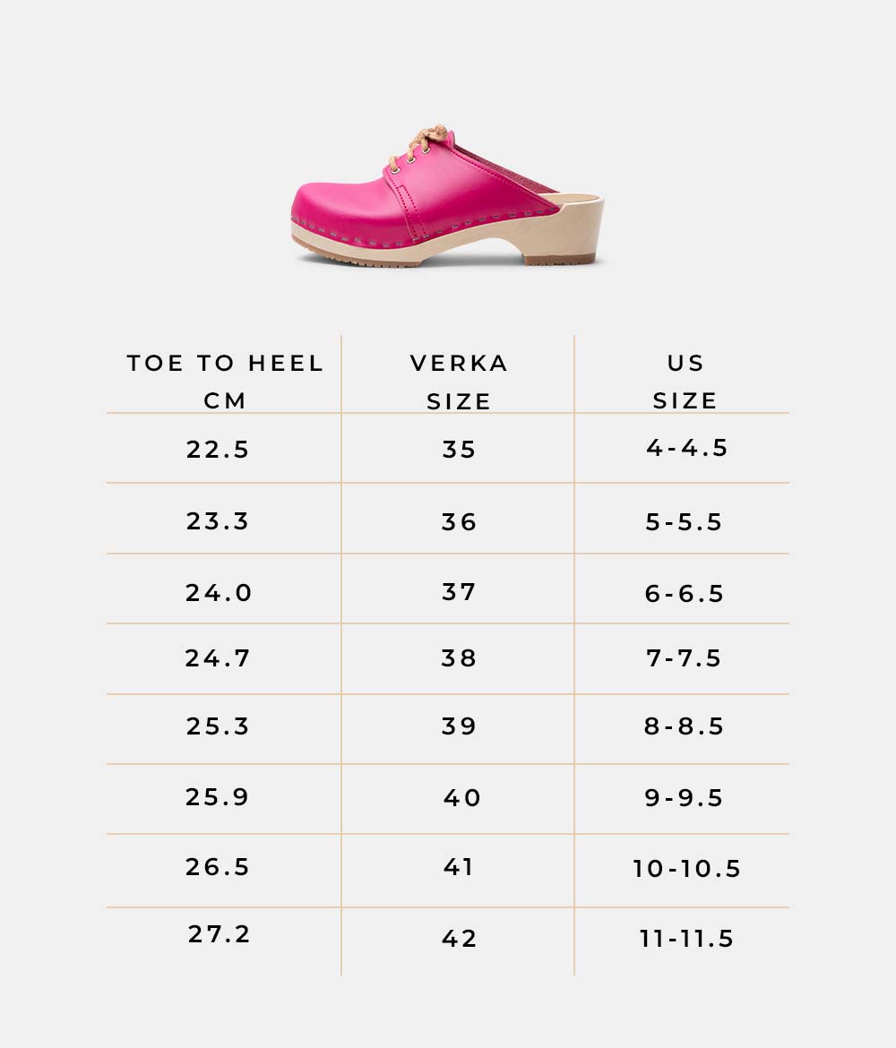 Looking for your VERKA size? Please measure your feet and compare the longest measurement to our style-specific size guide below.