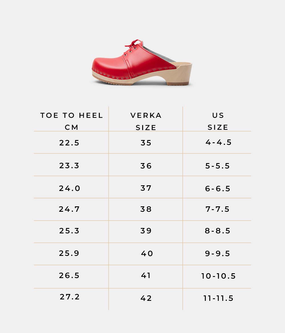 Looking for your VERKA size? Please measure your feet and compare the longest measurement to our style-specific size guide below.