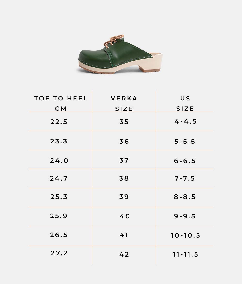 Looking for your VERKA size? Please measure your feet and compare the longest measurement to our style-specific size guide below.
