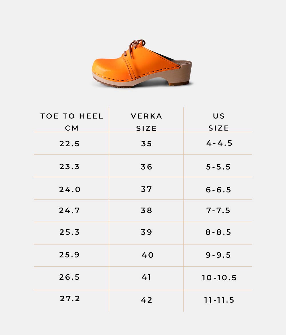 Looking for your VERKA size? Please measure your feet and compare the longest measurement to our style-specific size guide below.